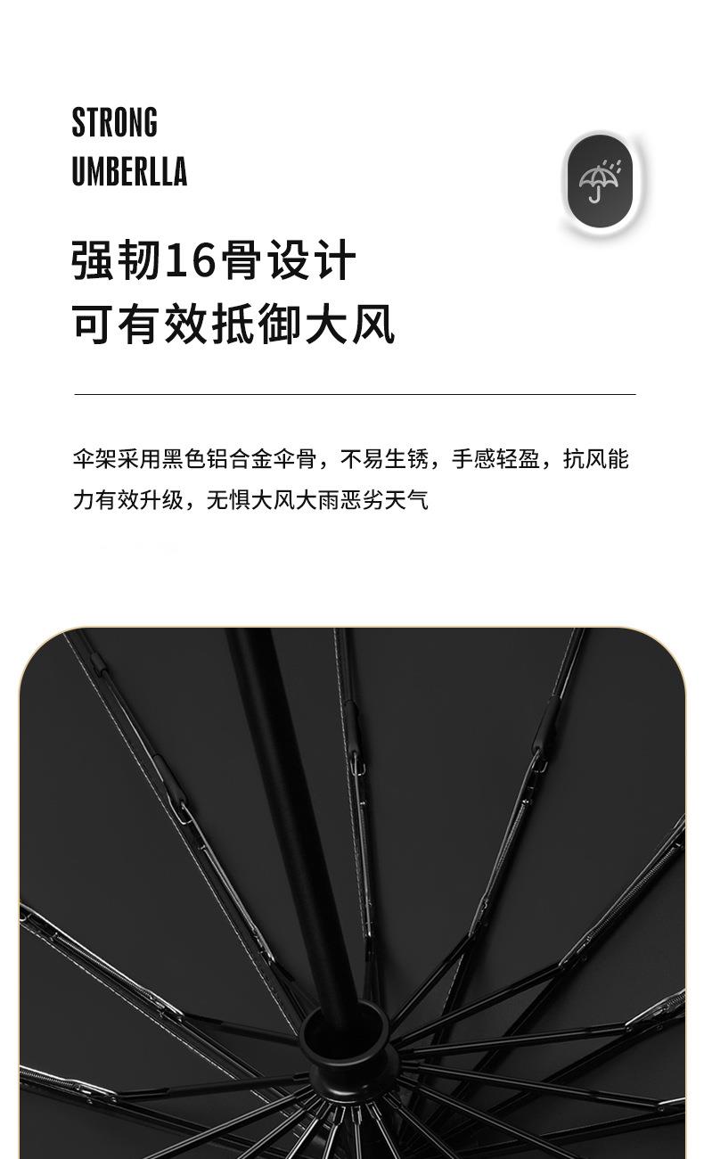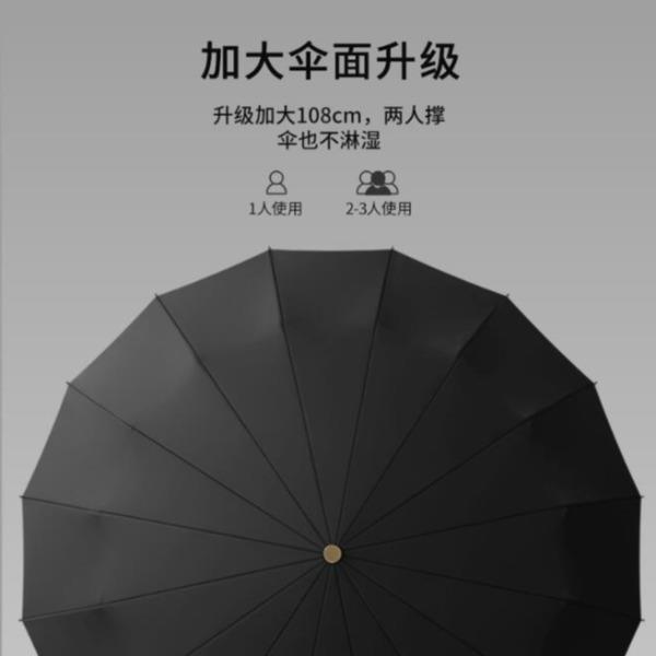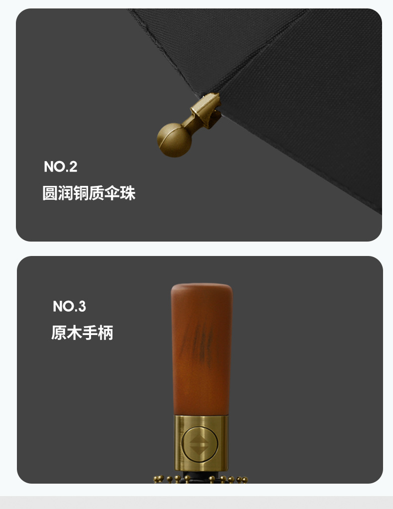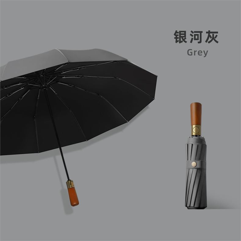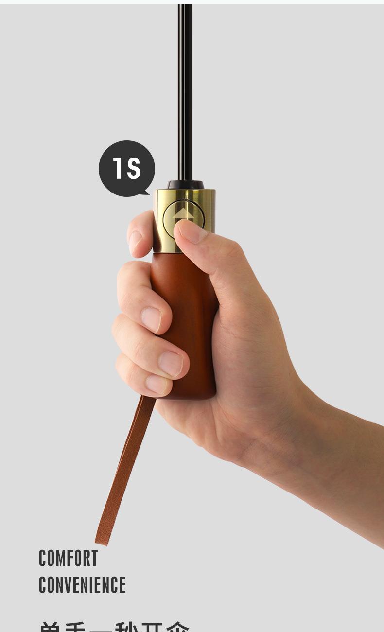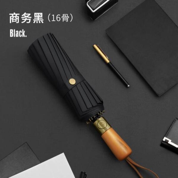 品名:全自动16骨原木手柄男商务晴雨伞 颜色:五色可选 伞布:黑胶+碰击布 抗风:较强 类型:自动三折 骨数:16骨 重量:612g 适用:1-2人